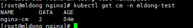 kubectl get cm -n mldong-test