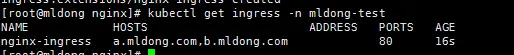 kubectl get ingress -n mldong-test
