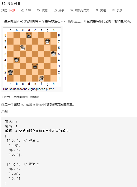 这题和LeetCode第51题做法一样,只不过不是记录具体方案,而是个数。分析见第51题。