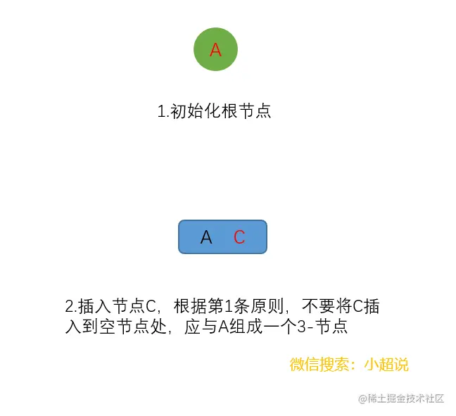 接下来我们一起看一下2-3树的生长过程: