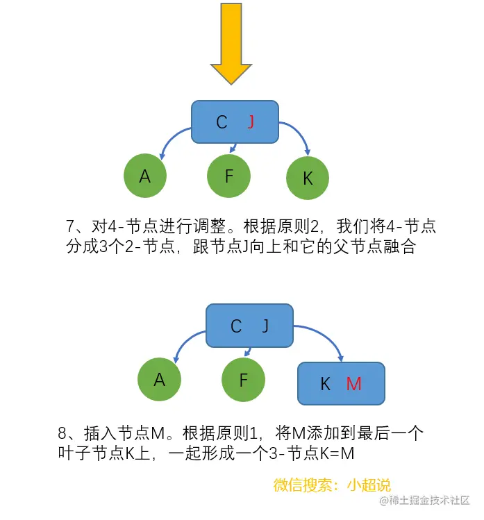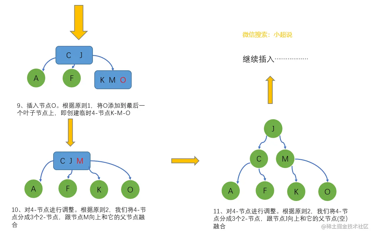 可以发现,虽然我们的插入顺序是[A->C->F->J->K->M->O->],是升序的,但是我们构造的2-3树却始终保持平衡。