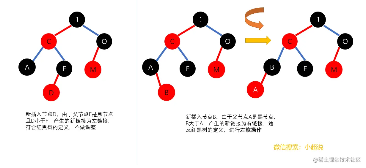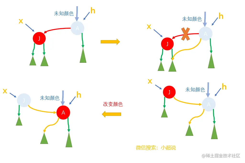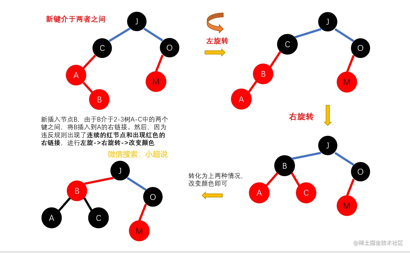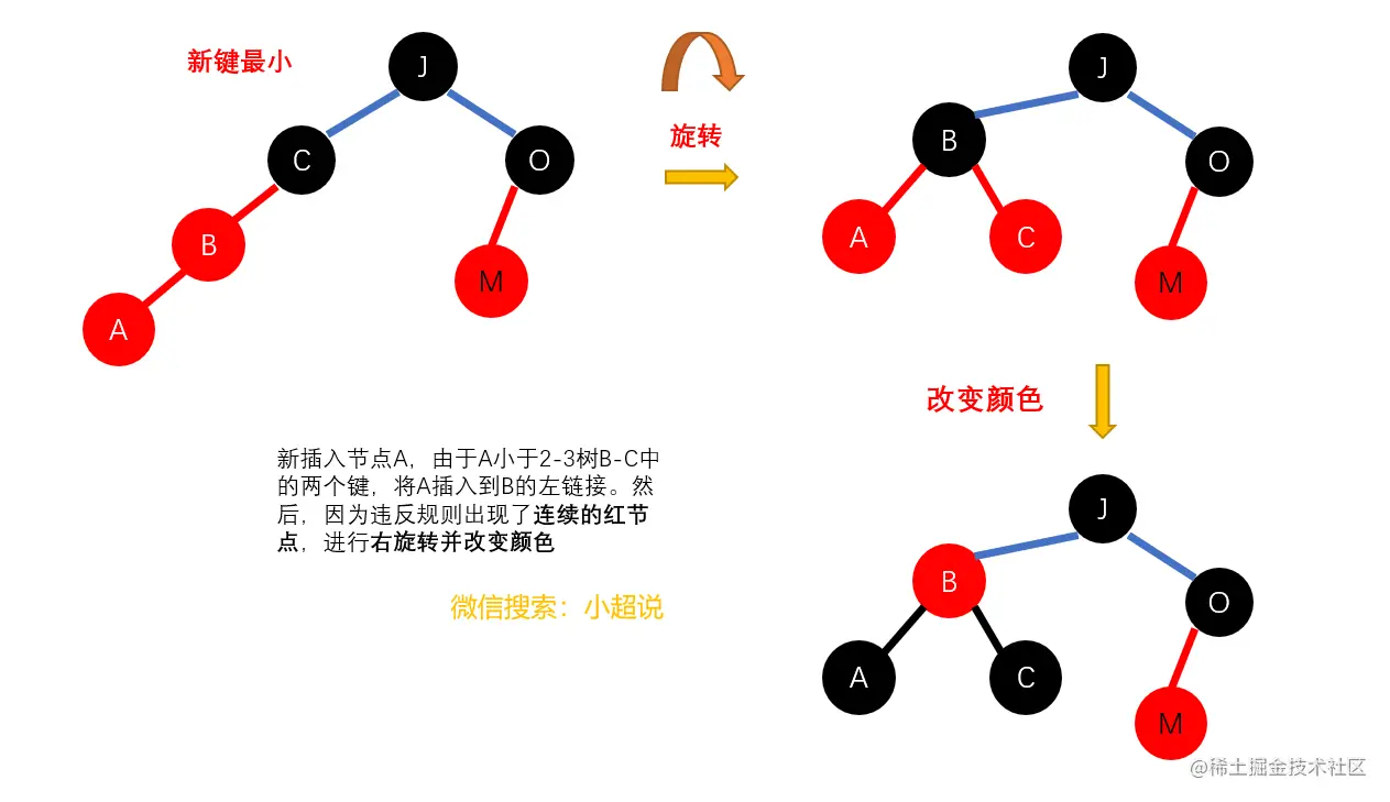 原则2我们可以对应为三种简单的操作:左旋转,右旋转和改变颜色