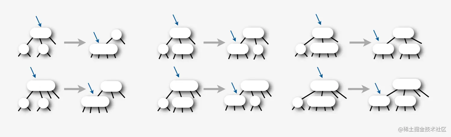左边是原始的结束于2-节点的情况,右边是我们希望的状态。