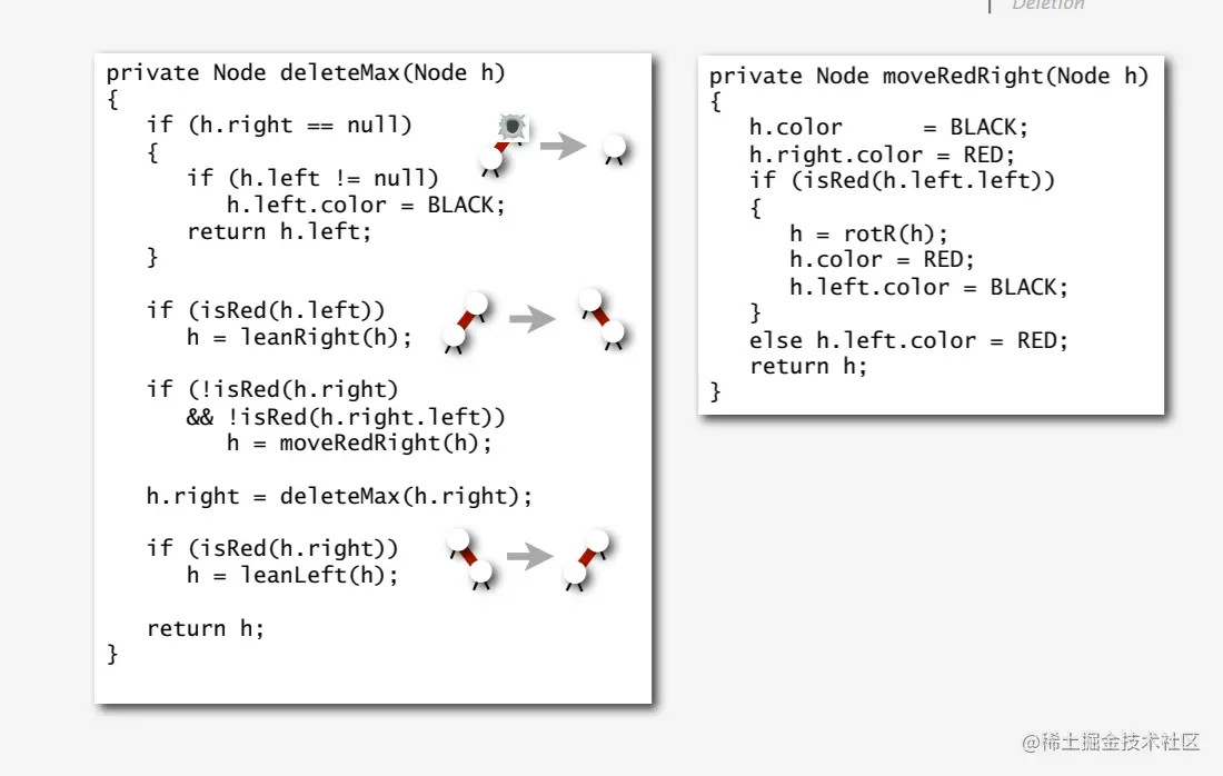 moveRedRight() - 找到后在底部删除节点