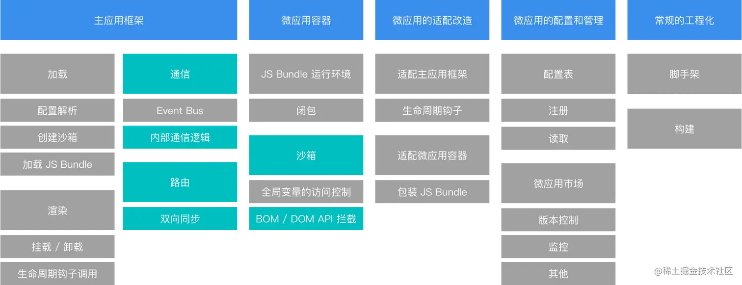 我们这里继续展开一下「微前端内核」部分,主要包括:
