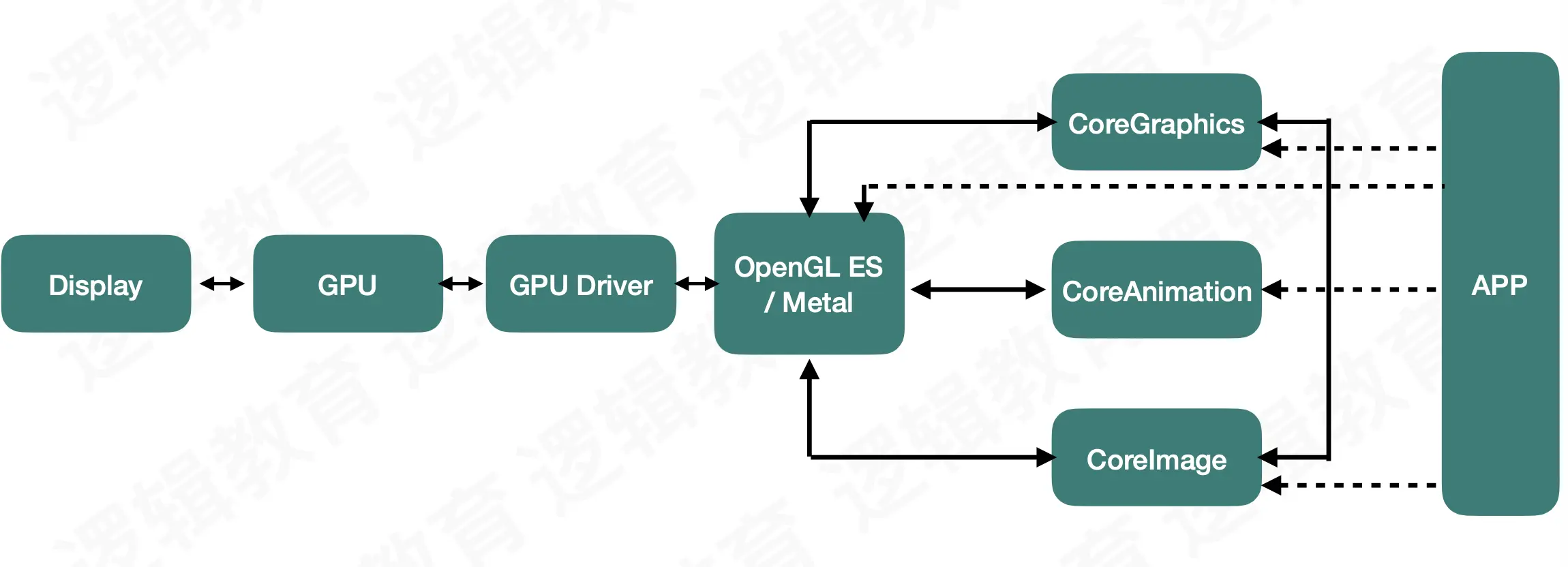 CoreAnimation通过OpenGL ES 或者 Metal驱动GPU 将图片通过“着色器渲染流程”渲染到屏幕上