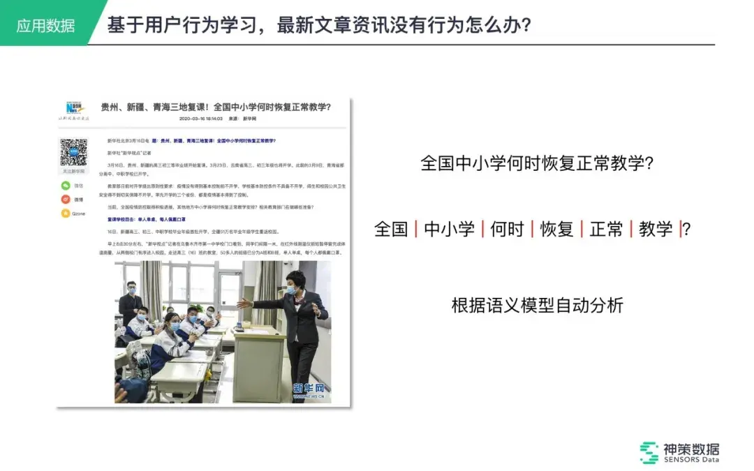 如果没有用户行为,神策还会基于一些语义分析来做推送,步骤如下: