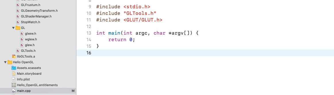 - 将OpenGLShare.zip 解压得到的文件夹,直接拖到工程目录中,并且删除项目中的AppDelegate.h ,AppDelegate.m,ViewController.h ,ViewController.m,main.m