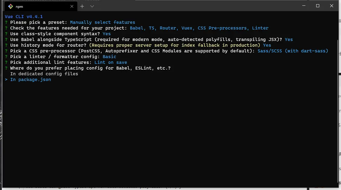 vue create project