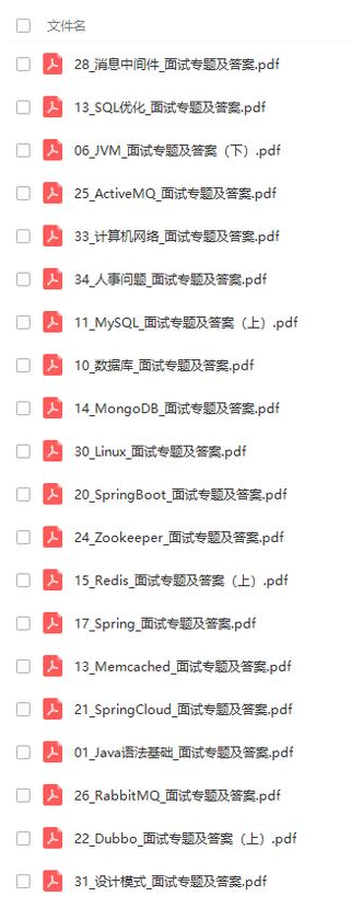 关于面试我还通过一些渠道整理了需要大厂真实面试主要有:蚂蚁金服、拼多多、阿里云、百度、唯品会、携程、等初级,中级,高级Java面试题集合,附带超详细答案,希望能帮助到大家。