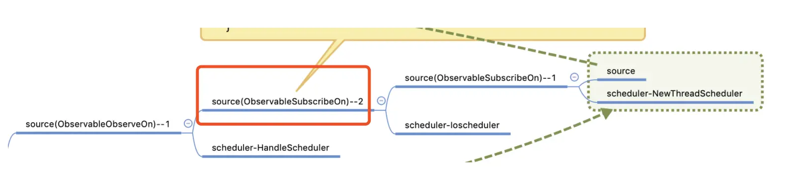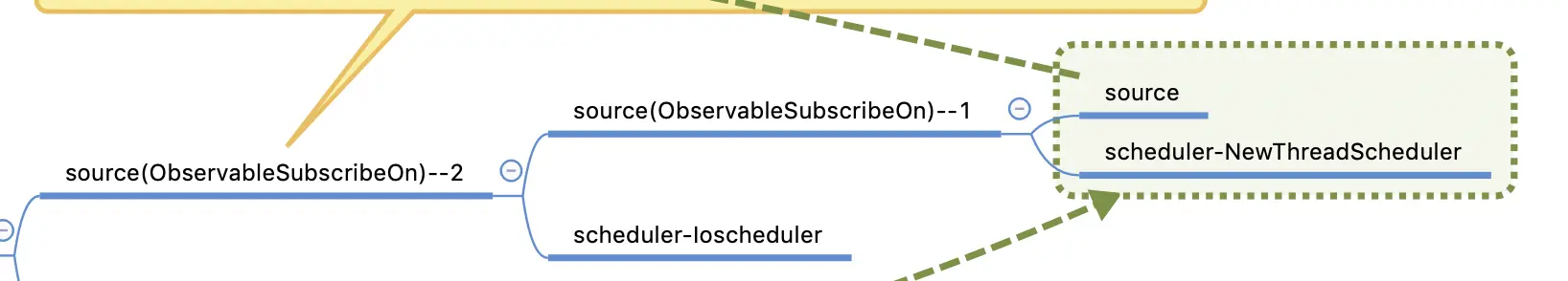 - 那个由上述的结论推理下一个source,也就是ObservableSubscribeOn,还将继续执行上述过程,线程切换到Schedulers.newThread()中,这里就不再重复跟进了,直接在SubscribeTask的run方法中继续跟进.