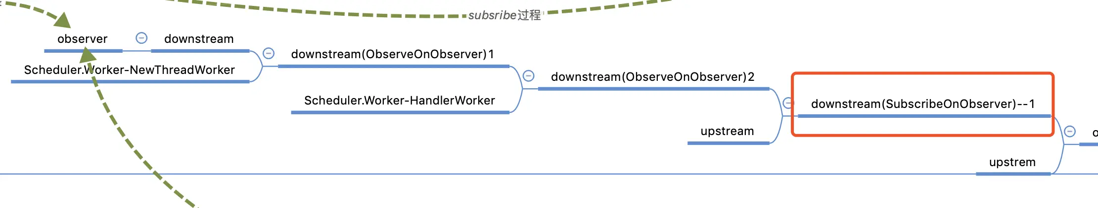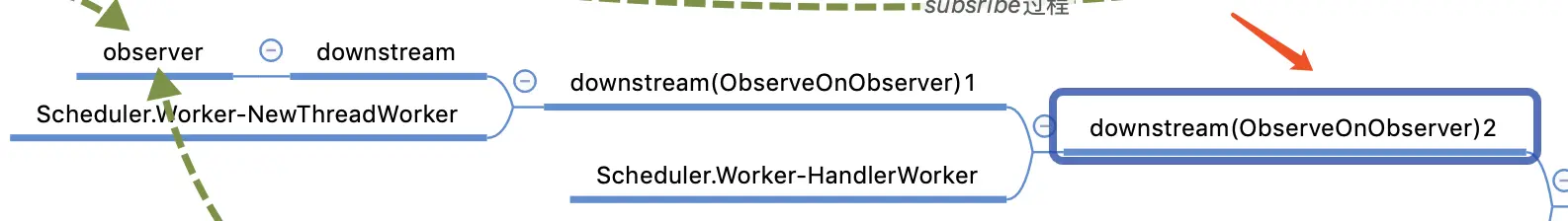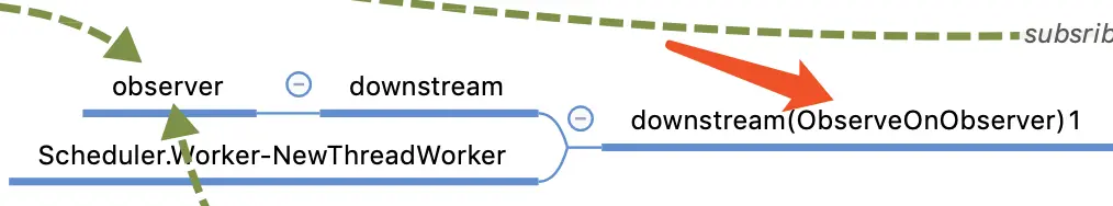 - 执行subscribe后,相当于回溯调用上游的Observable的订阅流程,是对上游的Observable拆解,也是对下游的Observer的一次包装,在此过程中对subscribeOn中的线程切换,但是最终的Observable是在第一次切换的线程中