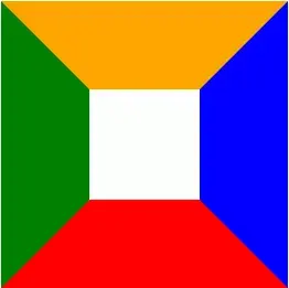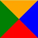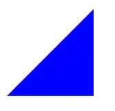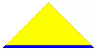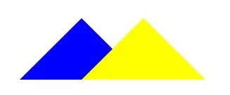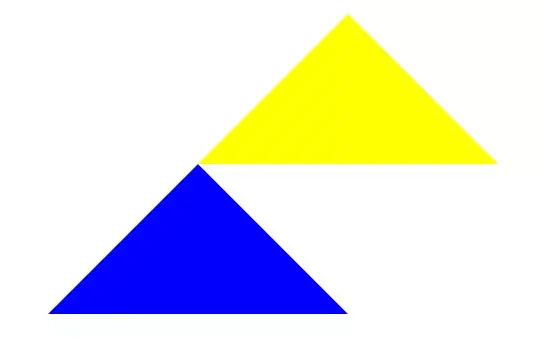 随后需要定义黄色三角形,由于黄色三角形的定位需要参考蓝色三角形的位置,所以需要用到绝对定位方法。为此还需要将黄色三角形作为蓝色三角形的子元素。一个可行的办法是在蓝色三角形内部定义一个额外的标签以表示黄色三角形,但为了节约标签起见,更好的办法是使用伪元素: