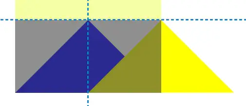 搞懂了绝对定位后,只需要在原代码上稍作修改就可以将黄色三角形的顶点与蓝色三角形顶点相重合,同时还应该适当缩小黄色三角形的尺寸(按相似三角形等比例缩小):