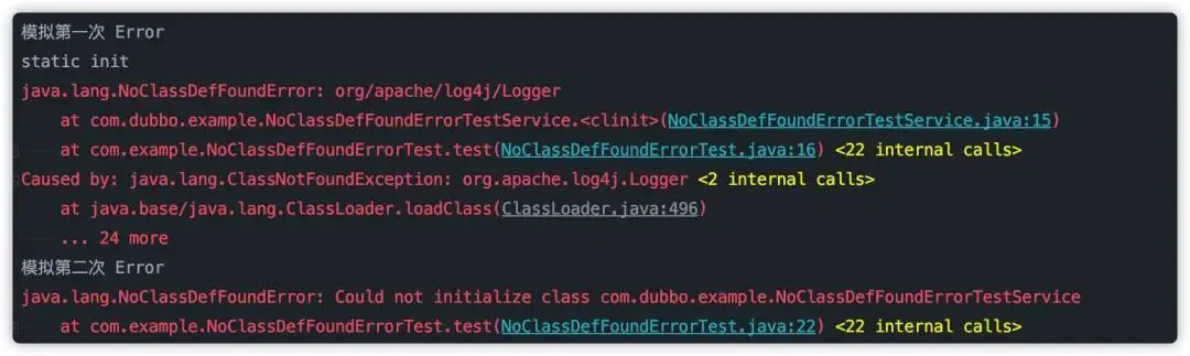 java.lang.NoClassDefFoundError: Could not initialize class com.dubbo.example.NoClassDefFoundErrorTestService