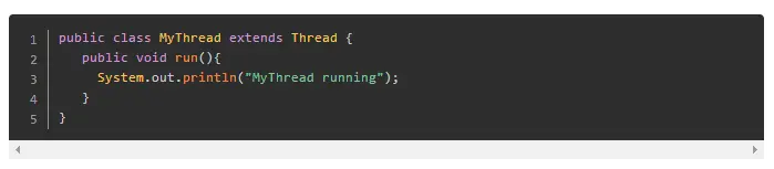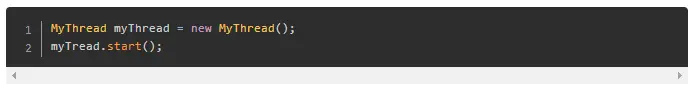 创建Thread子类的一个实例并重写run方法,run方法会在调用start()方法之后被执行。例子如下: