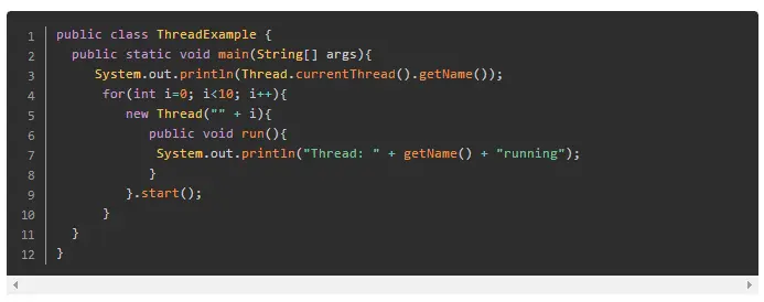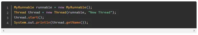 当创建一个线程的时候,可以给线程起一个名字。它有助于我们区分不同的线程。例如:如果有多个线程写入System.out,我们就能够通过线程名容易的找出是哪个线程正在输出。例子如下: