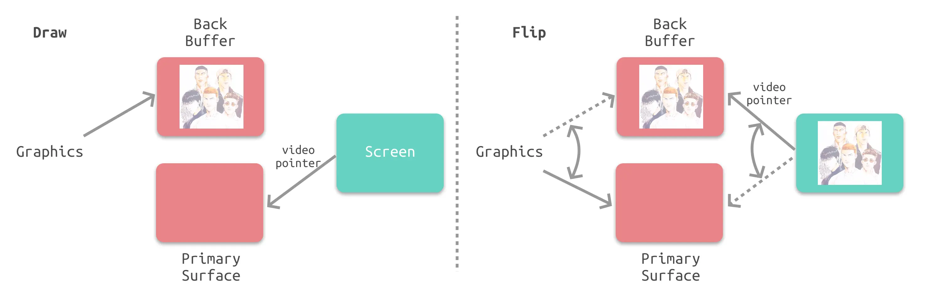 为了解决效率问题,GPU 通常会引入两个缓冲区,即双缓冲机制。在这种情况下,GPU 会预先渲染一帧放入一个缓冲区中,用于视频控制器的读取。当下一帧渲染完毕后,GPU 会直接把视频控制器的指针指向第二个缓冲器。