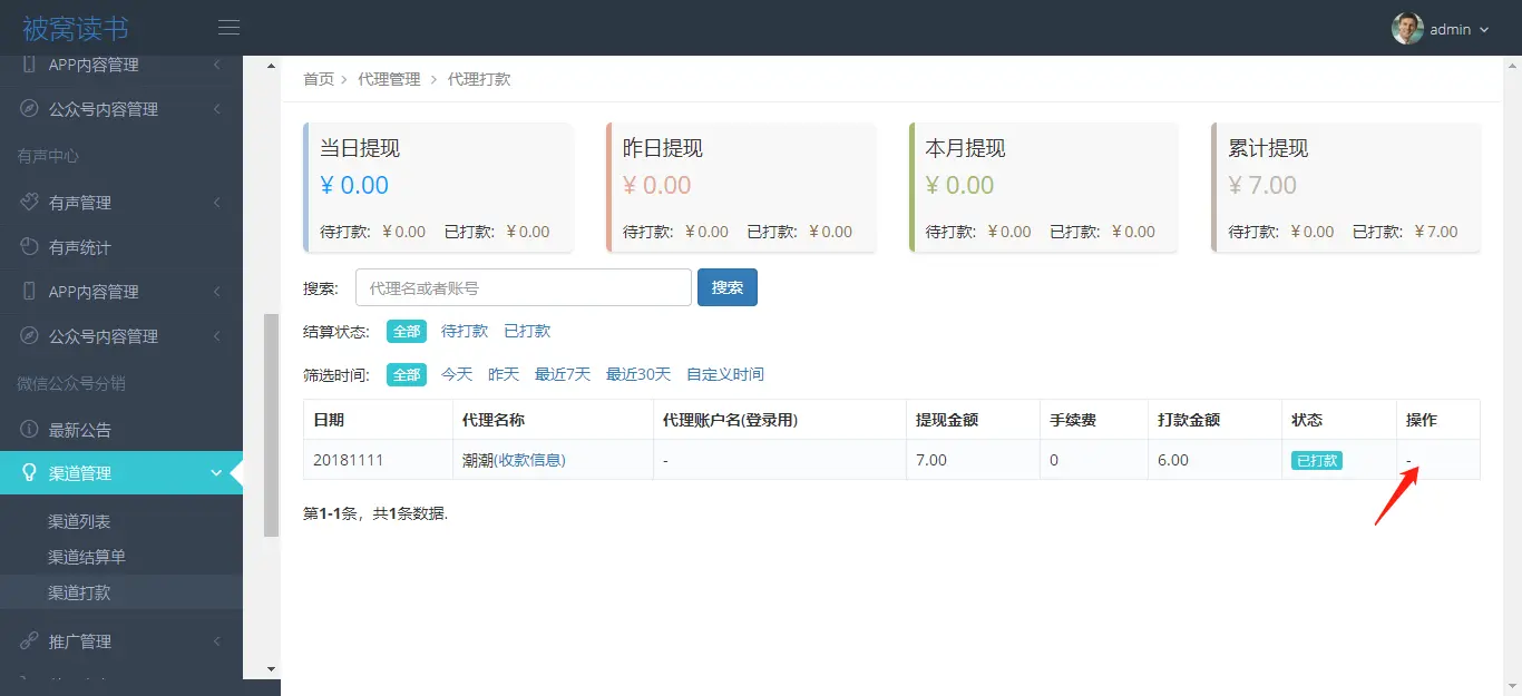 这个是用于测试的,搭建好的后台,箭头那里会有按钮可以进行打款操作。