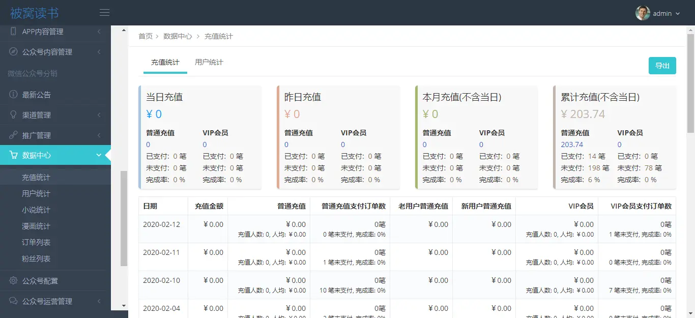 目前小说分销的主流还是cps模式,简单来说就是渠道负责推广,总站负责提供内容,分成比例是9:1,说到这里大家都会提到暗扣的问题,如果你是渠道,做代理负责推广,假设今日的充值次数是10,那么总站可能会偷偷扣掉7次甚至是9次,这个数据在你的后台是不会显示的,你的后台只会显示今日充值次数是3次,这也是为什么许多代理觉得现在小说变现市场前景不乐观,挣不到钱,这个问题我们没有办法避免,如果真的想赚钱,尝试做总站是个很好的选择。简单容易操作。