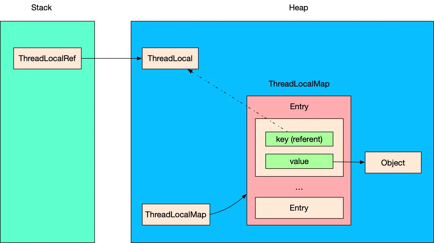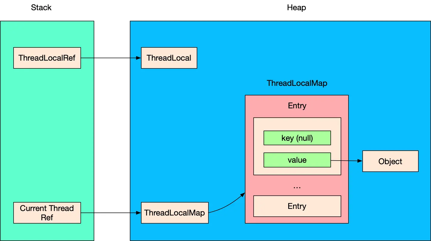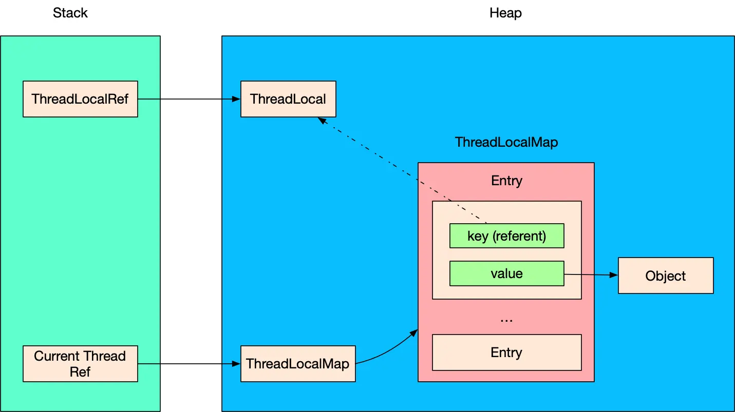 - 以当前 ThreadLocal 为 key、新增的 Object 为 value 组成一个 Entry,放入 ThreadLocalMap,也就是 Entry 数组中。