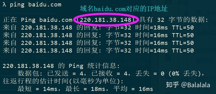 我们可以通过 ping命令得到该域名对应的IP地址,如上图(ping得到域名对应的IP)所示。