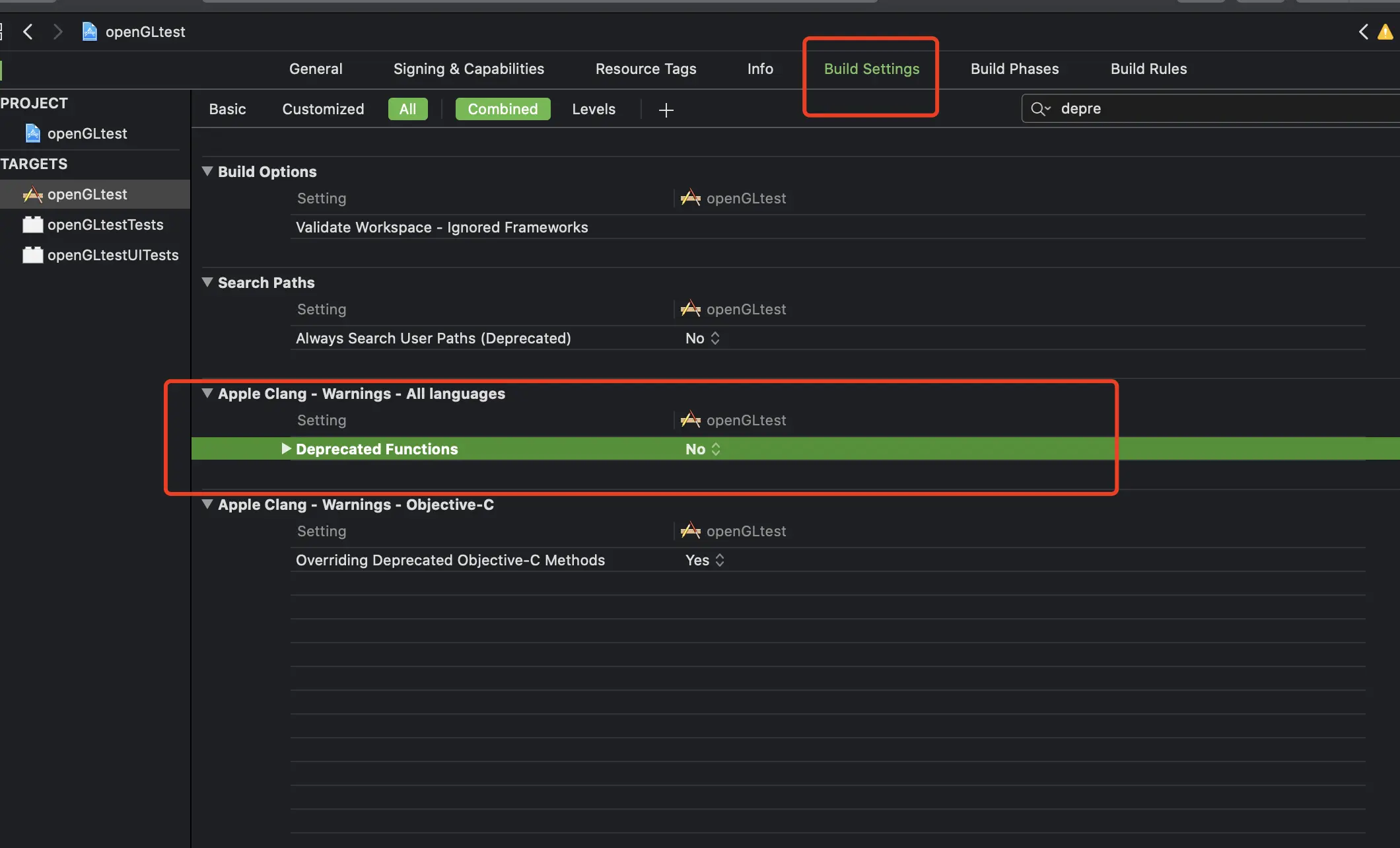 强迫症消除警告:build settings-> Deprecated Functions -> NO