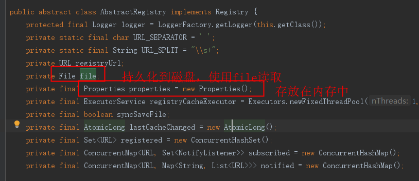 注册中心实现了通用的缓存机制,在抽象类AbstractRegistry中实现。
