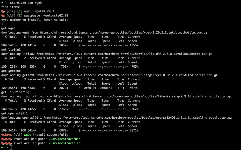 - 使用了 store.axe sou wget 命令来搜索并安装了