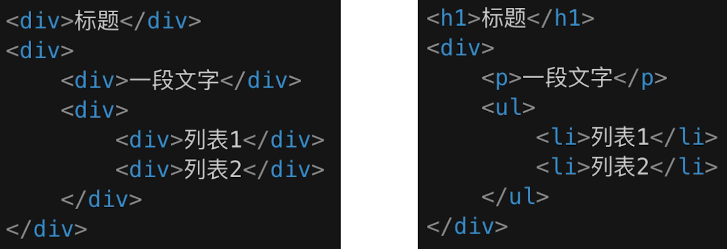 让人更容易读懂(增加代码可读性) 让搜索引擎更容易读懂代码(SEO)