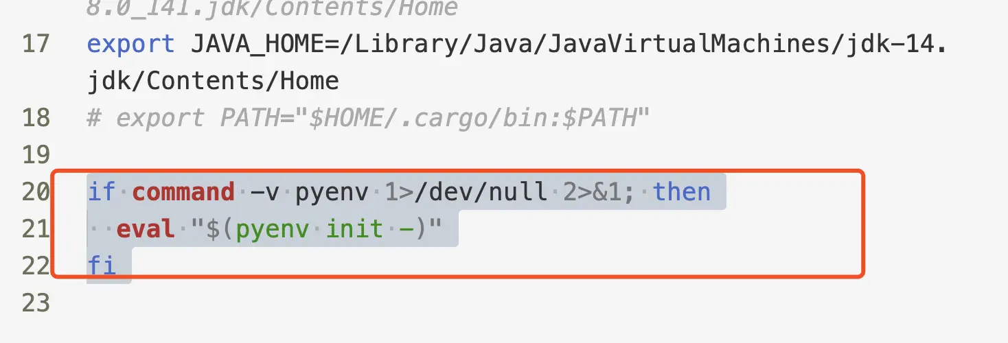 echo -e 'if command -v pyenv 1>/dev/null 2>&1; then\n eval "$(pyenv init -)"\nfi' >> ~/.bash_profile
