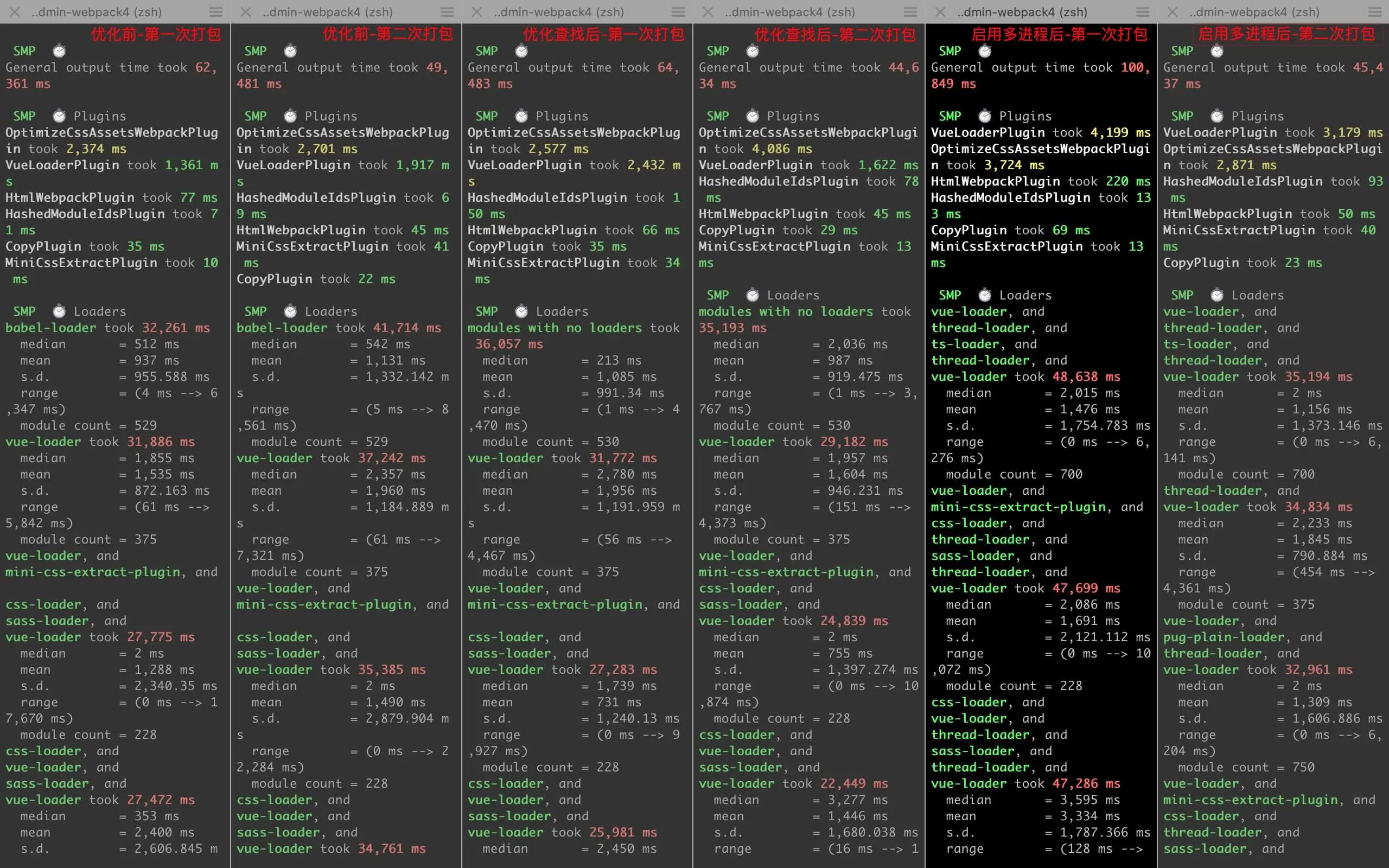 HappyPack)和冗余(terser-webpack-plugin默认会启用 多进程)的部分,而且也没有实践的部分,顿时就觉得有了自己的(这篇文章)存在有了意义; - 二是发现优化完之后发现效果不好,在本地构建甚至反向优化,一度怀疑还有没有写的必要,好在在测试服务器上通过