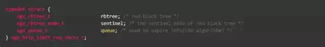经过上面的示例,我们队请求限速模块有了一定的认识,现在我们深入剖析代码实现。按请求速率限流模块ngx_http_limit_req_module代码位于(github.com/nginx/nginx…),900多好代码可谓短小精悍。相关代码有两个核心数据结构: