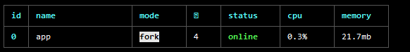 | app name / id | 进程的标识,可以对他们进行别的操作,比如stop,delete |