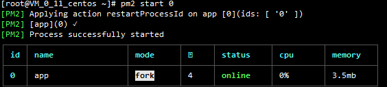 | mode | 进程模式,cluster或fork。cluster有多个进程,而fork只有一个。 |