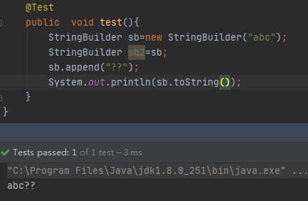 StringBuilder sb2=sb;我们也可以这样来使对象持有一个已有的引用,这两个对象会指向同一个地址空间,