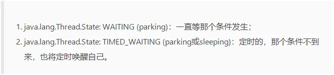 J.U.C中很多与线程相关类,都提供了限时版本和不限时版本的API。TIMED_WAITING意味着线程调用了限时版本的API,正在等待时间流逝。当等待时间过去后,线程一样可以恢复运行。如果线程进入了WAITING状态,一定要特定的事件发生才能恢复运行;而处在TIMED_WAITING的线程,如果特定的事件发生或者是时间流逝完毕,都会恢复运行。