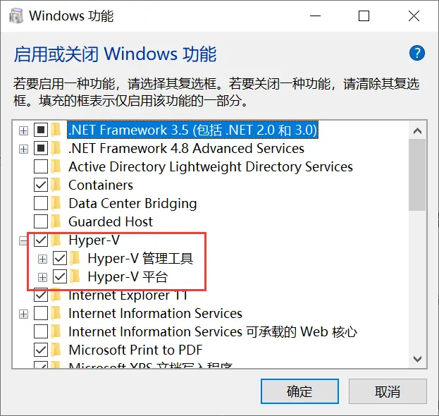 勾选Hyper-V