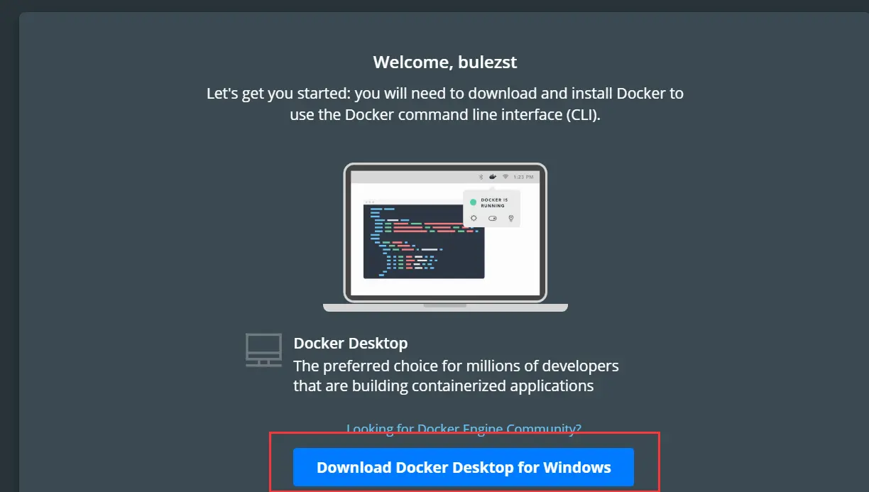 点击链接 (hub.docker.com/?overlay=on…) ,然后点击下图中的按钮“Download Docker Desktop for Windows”