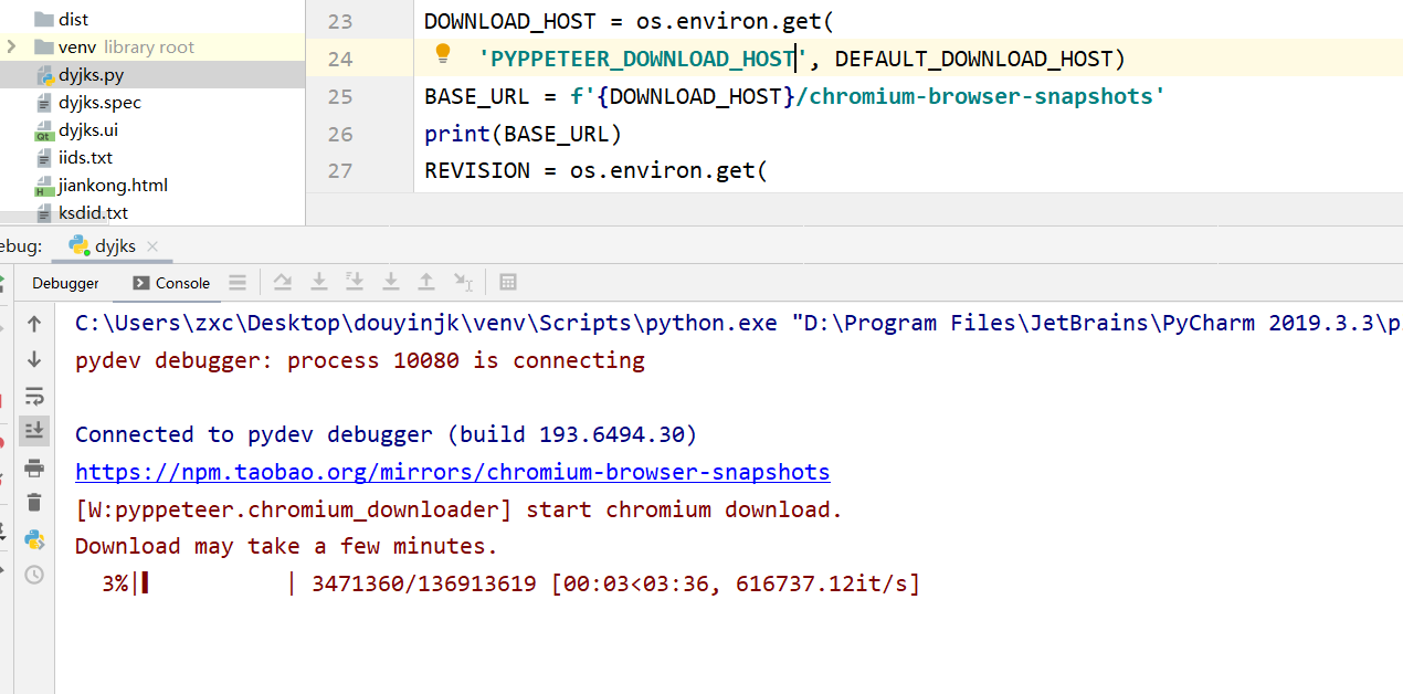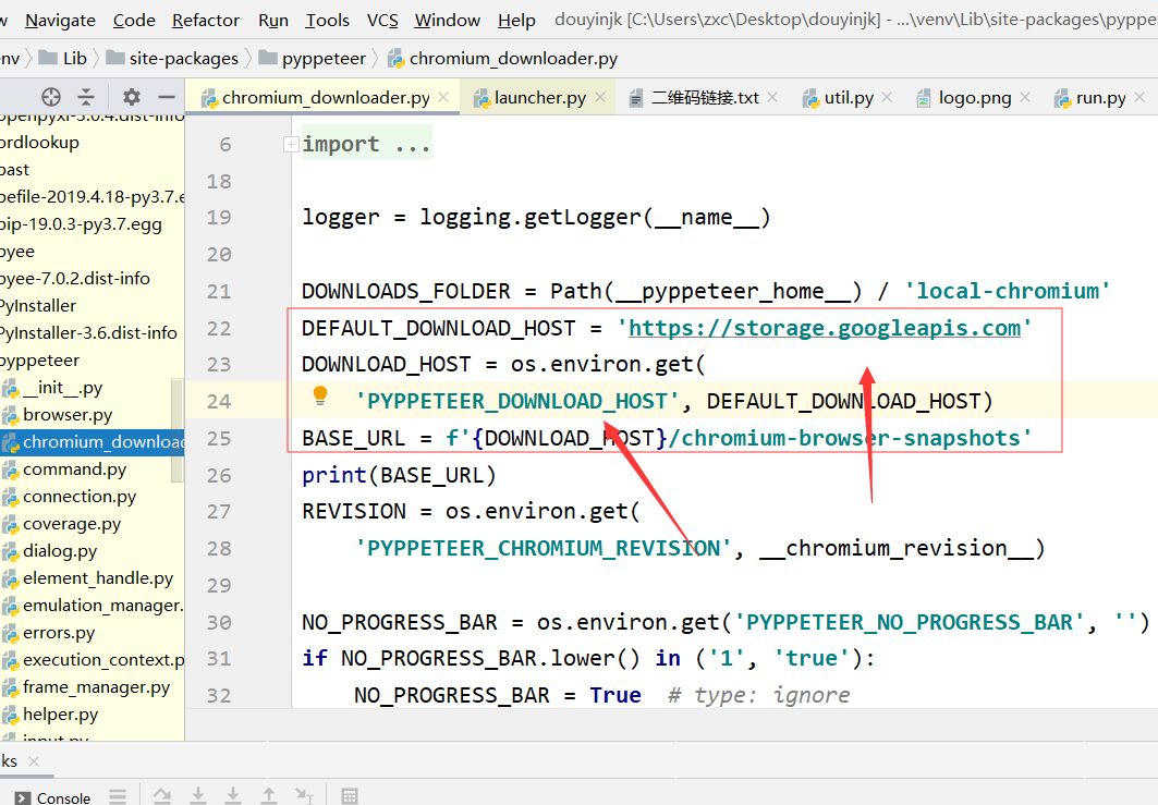 这里一定要注意引入顺序,设置环境变量一定要在pyppeteerload之前设置。