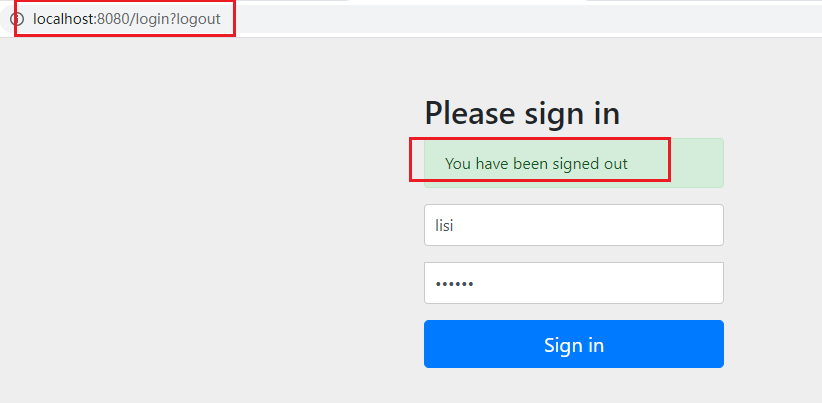 注销成功并且来带http://localhost:8080/login?logout 页面