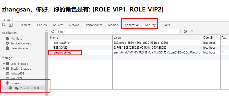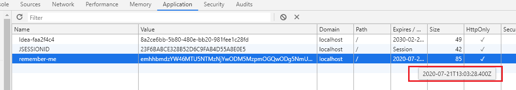 勾选了记住我后,在我们登陆成功后SpringSecurity会为浏览器发送一个cookies,cookies名为