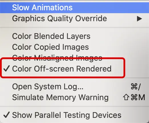 模拟器设置Debug中的Color Off-screen Rendered,来看是否触发