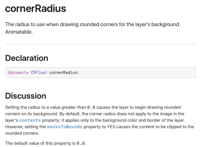 the corner radius does not apply to the image in the layers contents property;it applies only to the background color and border of the layer. However,setting the