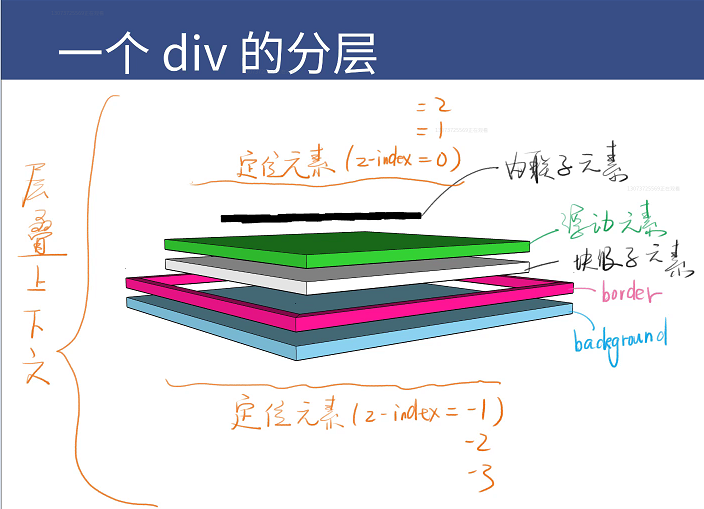 层叠上下文是把所有的分层包起来,默认的层叠上下文是html。
