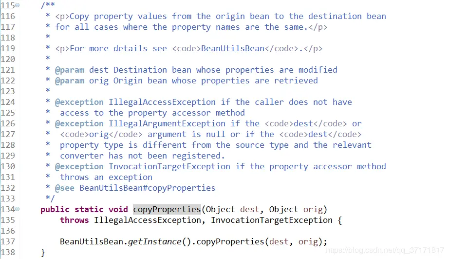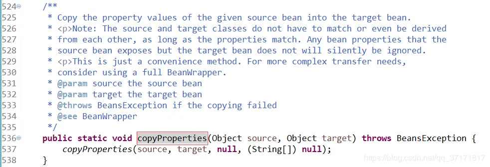眼尖的伙伴已经注意到了,apache的第一个参数是目标对象,第二个是源对象;springframework的第一个参数是源对象,第二个是目标对象。所以大家在开发的时候一定要注意引用的是哪个包。