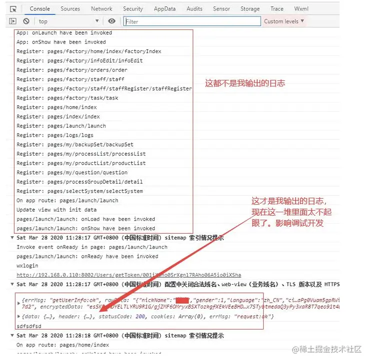 开发微信小程序,调试控制台总是显示着一堆的日志,大多是WAService.js输入的页面初始化日志,影响自己日志的显示。