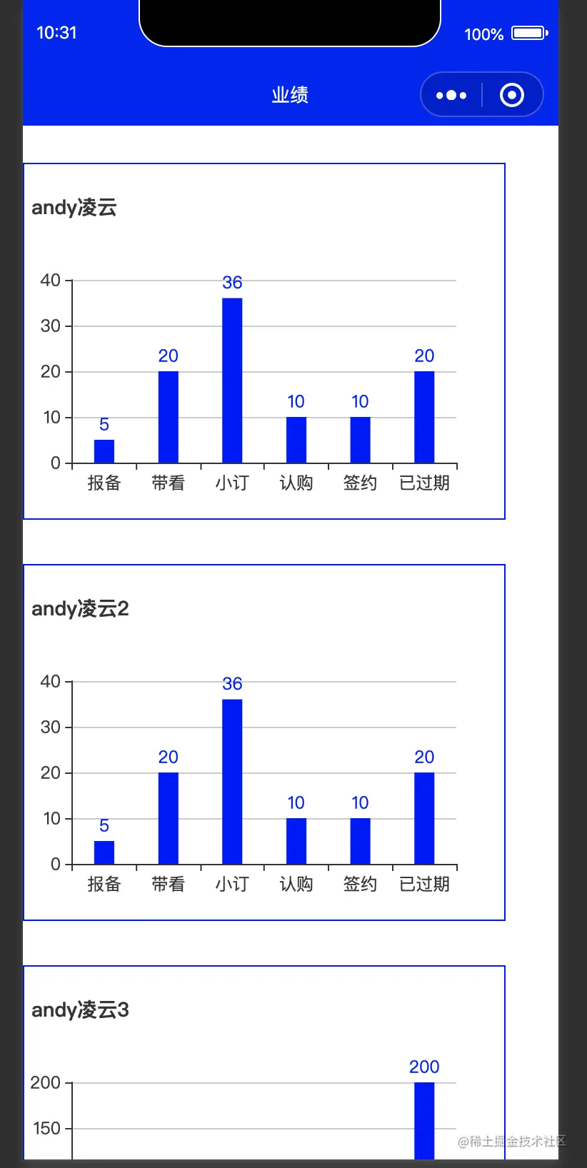 上面的itemList数据是写死的。 如果是需要后端接口返回的数据, 只需要把后端接口返回的数据, 转换成类似格式并赋值给itemList变量即可显示echarts图表。