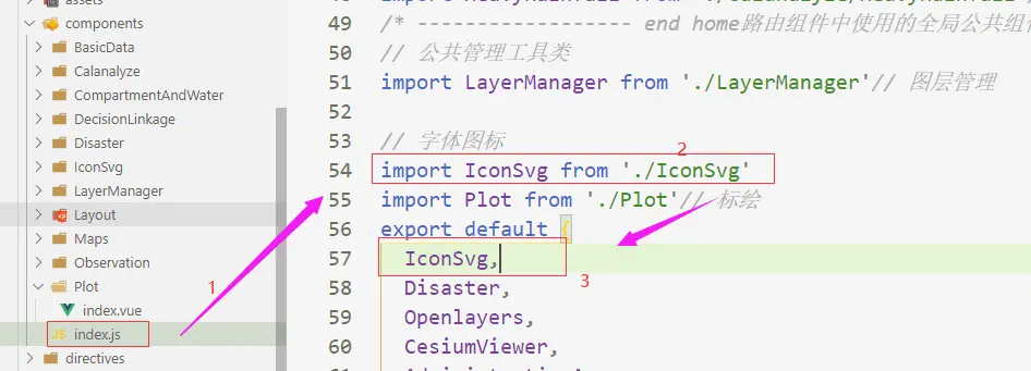 - 因为每个页面或组件或多或少的会使用一些图标所以我是做的全局组件引入注册,否则就要在每一个使用的组件内都需要引入注册好麻烦的说,所以相关步骤就是 我在components根目录创建index.js做一个导出动作