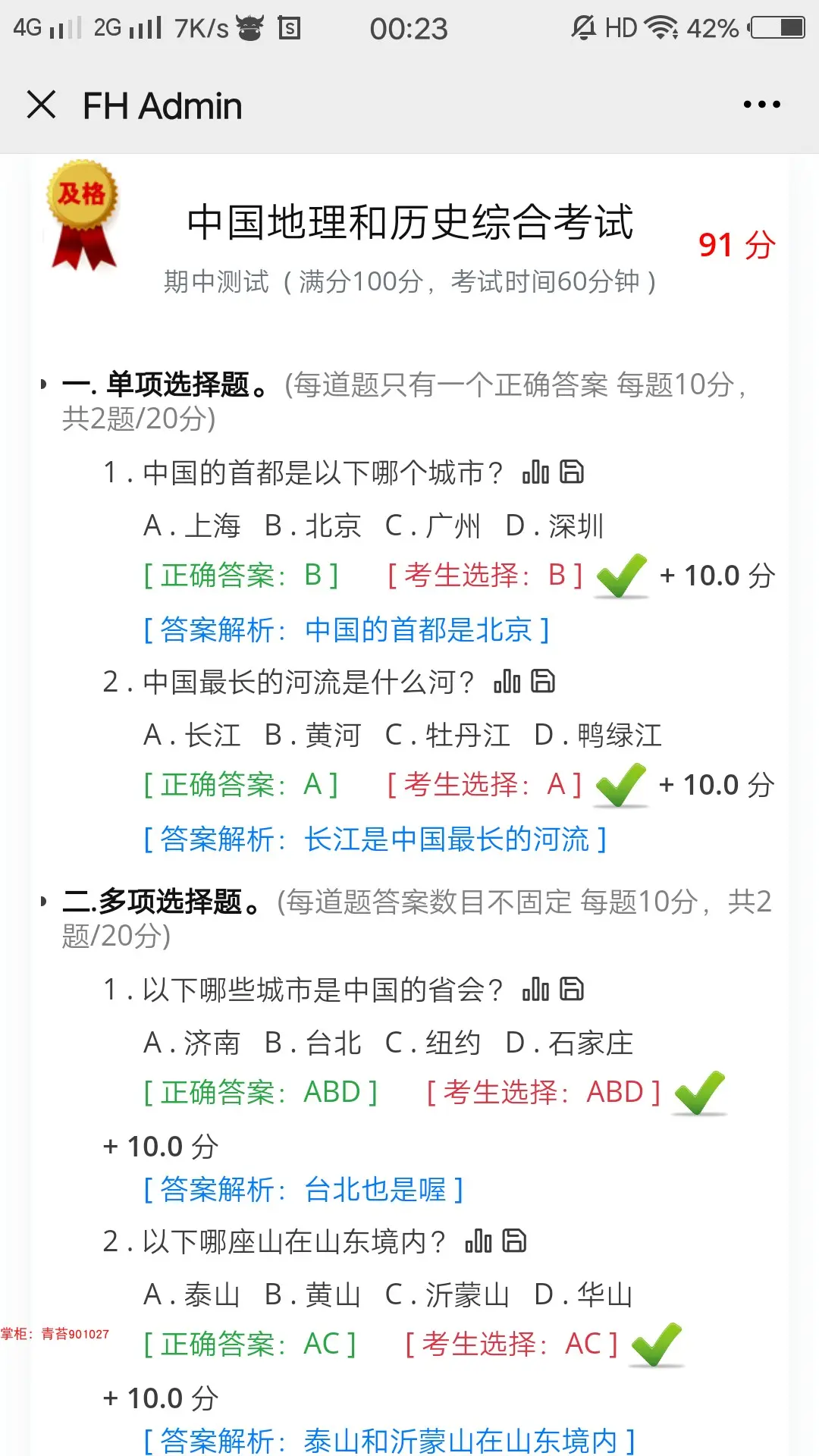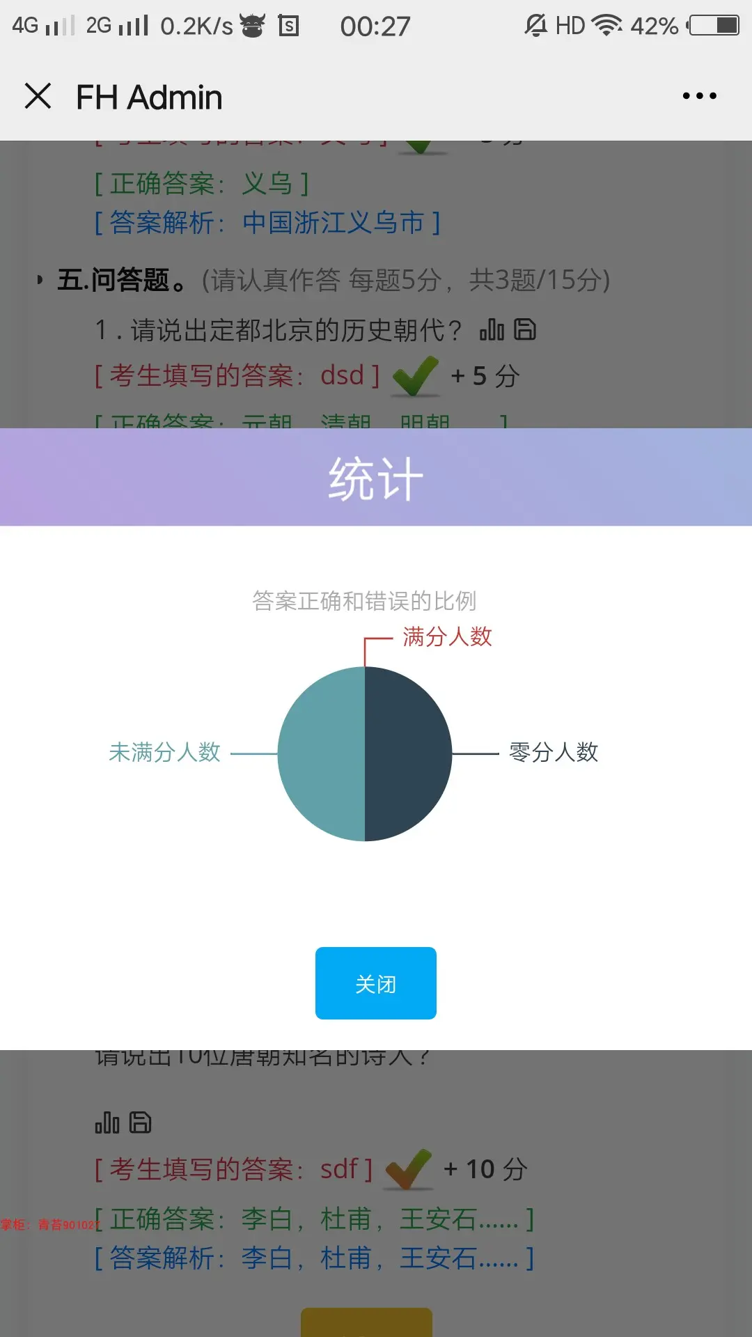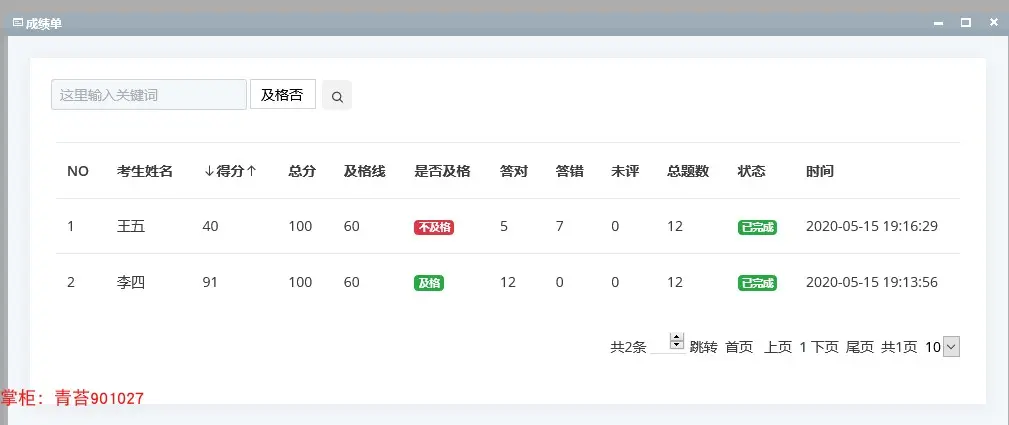 37. 我的成绩:查看自己的成绩,需要人工评阅的待评阅后才可看到成绩,已出的可以查看试卷信息,统计等